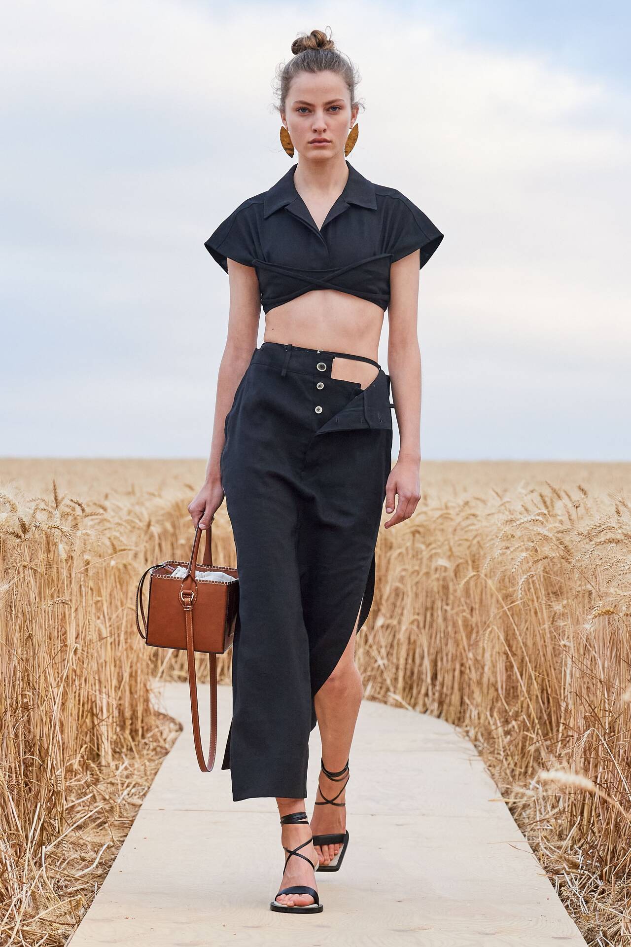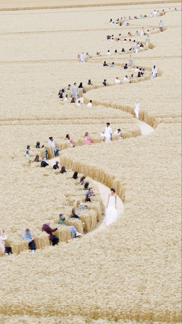 크게 화려하지 않은 세팅이지만 인스타 피드에 떴을 때 보고 넘 좋아한 쇼다. 스포이드를 찍어 보면 요즘 유행하는 인스타그램 피드 색감과 비슷하게 나올 것 같다. 저자본으로 소셜미디어로 성공한 트렌디한 감성의 소유자라서 그런가? 컬러스킴이 너무 편안하고 곡식 내음 폴폴. 태양 빛에 바랜 미니멀한 색채와 라인, 피카소 작품을 모팊으로 한 그래픽 셔츠, 볏짚 같은 테슬 표현 너무 기발하고 도라이같다. 큼지막한 코일 악세사리의 추수 도구를 떠오르게 하는 메탈릭함. 프랑스 남부의 "harvest festival authenticity"를 확실히 보여주는 데 성공한 듯.